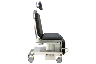 Az elektromos vezérlésű fejtámla 50 mm-es függőleges mozgást kínál, a háttámla vízszintes helyzetben van. Ez a a mozgás lehetővé teszi a fej ventralis vagy dorsalisra billentését bizonyos eljárások esetén. Így a betegek feje kényelmesebb helyzetbe kerülhet.